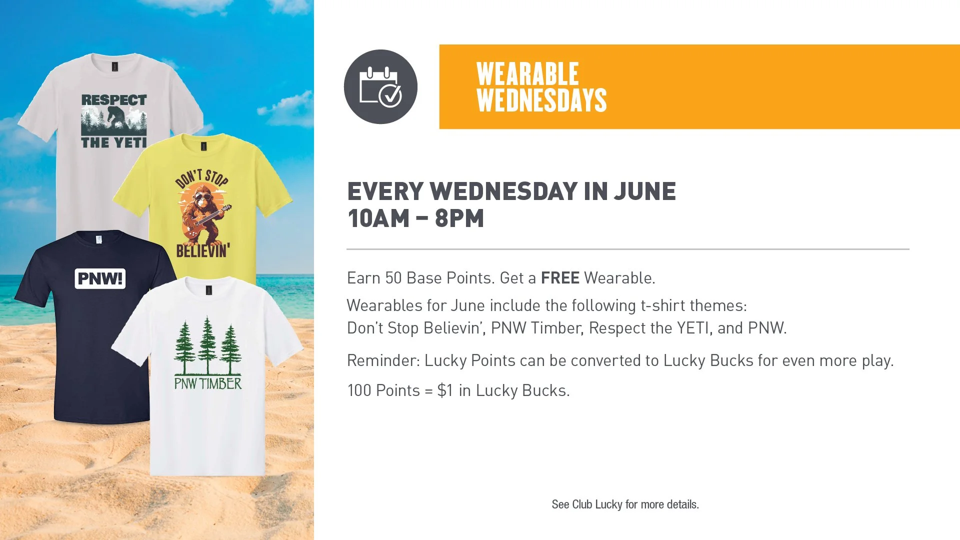 Lucky Points can then be redeemed for food, merchandise or converted into MORE Lucky Bucks (that's even more play)!